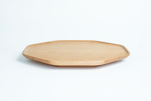 ガラスや磁器の皿に比べて、軽くて持ちやすく、割れにくいのが特長。フラットな形状は盛り皿にも取り皿にもどちらでも使いやすく、フチがついているのでパンくずなどが落ちにくくなっています。使うほどに経年変化が楽しめるオイル仕上げです。